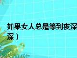 大家好,小东方来为大家解答以上的问题。如果女人总是等到夜深是什么歌,歌词如果女人总是等到夜深这个很多人还不知道,现在让我们一起来看看 浏览全文>>