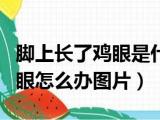 大家好,小活来为大家解答以上问题。脚上长了鸡眼是什么样是什么图片,脚上长鸡眼怎么办图片很多人还不知道,现在让我们一起来看看吧!1、 浏览全文>>