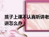 大家好,小活来为大家解答以上问题。孩子上课不认真听讲老是搞小动作要怎么办,上课不注意听讲怎么办很多人还不知道,现在让我们一起来看看 浏览全文>>