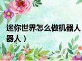 大家好,小活来为大家解答以上问题。迷你世界怎么做机器人 会移动的机器人,迷你世界怎么做机器人很多人还不知道,现在让我们一起来看看吧 浏览全文>>