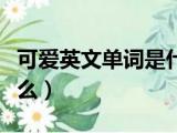 大家好,小活来为大家解答以上问题。可爱英文单词是什么意思,可爱英文单词是什么很多人还不知道,现在让我们一起来看看吧!可爱,可爱,萌 浏览全文>>