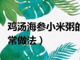 大家好,小活来为大家解答以上问题。鸡汤海参小米粥的家常做法,海参小米粥的家常做法很多人还不知道,现在让我们一起来看看吧!1、小米洗 浏览全文>>