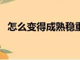 大家好,小活来为大家解答以上问题。怎么变得成熟稳重不幼稚,怎么变得成熟很多人还不知道,现在让我们一起来看看吧!1、要想变得成熟,就 浏览全文>>