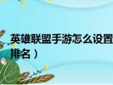 大家好,小活来为大家解答以上问题。英雄联盟手游怎么设置地区排名,英雄联盟怎么查英雄地区排名很多人还不知道,现在让我们一起来看看吧! 浏览全文>>