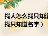 大家好,小活来为大家解答以上问题。找人怎么找只知道名字和大概地址,找人怎么找只知道名字很多人还不知道,现在让我们一起来看看吧!1、 浏览全文>>