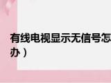 大家好,小活来为大家解答以上问题。有线电视显示无信号怎么办视频,有线电视显示无信号怎么办很多人还不知道,现在让我们一起来看看吧!检 浏览全文>>