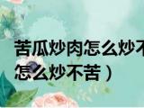 大家好,小活来为大家解答以上问题。苦瓜炒肉怎么炒不苦又好吃不变色,苦瓜炒肉怎么炒不苦很多人还不知道,现在让我们一起来看看吧!1、苦 浏览全文>>
