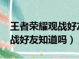 大家好,小活来为大家解答以上问题。王者荣耀观战好友他会知道吗?,王者荣耀观战好友知道吗很多人还不知道,现在让我们一起来看看吧!1、回 浏览全文>>