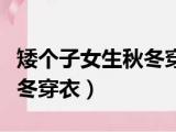 大家好,小活来为大家解答以上问题。矮个子女生秋冬穿衣搭配图片,矮个子女生秋冬穿衣很多人还不知道,现在让我们一起来看看吧!1、羽绒服 浏览全文>>