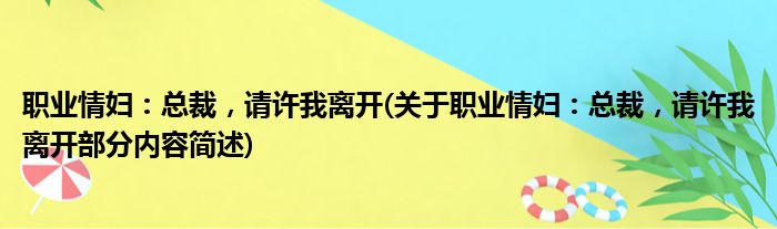 导读 大家好,今天小方来说说一篇关于职业情妇:总裁,请许我离开,关于职业情妇:总裁,请许我离开部分内容简述的文章,那么现在就为大家来简单