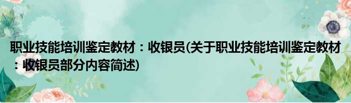 导读 大家好,今天小方来说说一篇关于职业技能培训鉴定教材:收银员,关于职业技能培训鉴定教材:收银员部分内容简述的文章,那么现在就为大家来