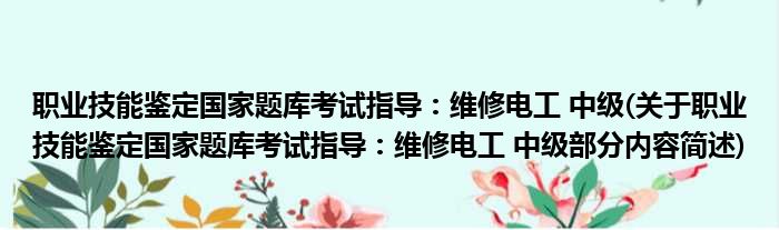 导读 大家好,今天小方来说说一篇关于职业技能鉴定国家题库考试指导:维修电工 中级,关于职业技能鉴定国家题库考试指导:维修电工 中级部分内