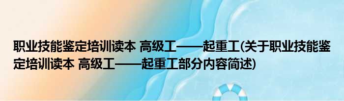导读 大家好,今天小方来说说一篇关于职业技能鉴定培训读本 高级工——起重工,关于职业技能鉴定培训读本 高级工——起重工部分内容简述的文章