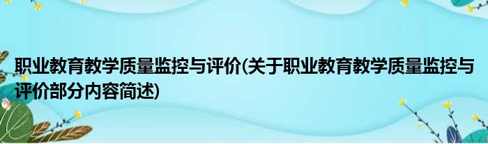 职业教育教学质量监控与评价(关于职业教育教学质量监控与评价部分内容简述)