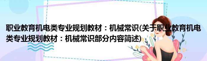 导读 大家好,今天小方来说说一篇关于职业教育机电类专业规划教材:机械常识,关于职业教育机电类专业规划教材:机械常识部分内容简述的文章,那