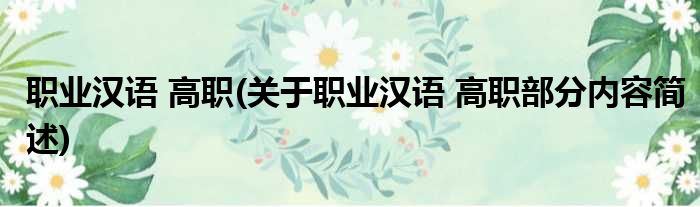 职业汉语 高职(关于职业汉语 高职部分内容简述)