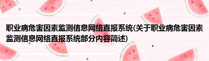 职业病危害因素监测信息网络直报系统(关于职业病危害因素监测信息网络直报系统部分内容简述)