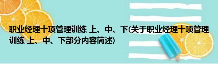 职业经理十项管理训练 上、中、下(关于职业经理十项管理训练 上、中、下部分内容简述)