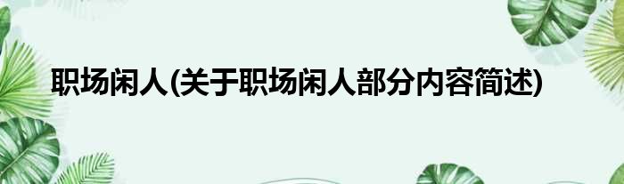导读 大家好,今天小方来说说一篇关于职场闲人,关于职场闲人部分内容简述的文章,那么现在就为大家来简单介绍下,希望对各位小伙伴们有所帮助。