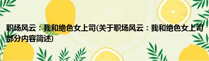 导读 大家好,今天小方来说说一篇关于职场风云:我和绝色女上司,关于职场风云:我和绝色女上司部分内容简述的文章,那么现在就为大家来简单介绍