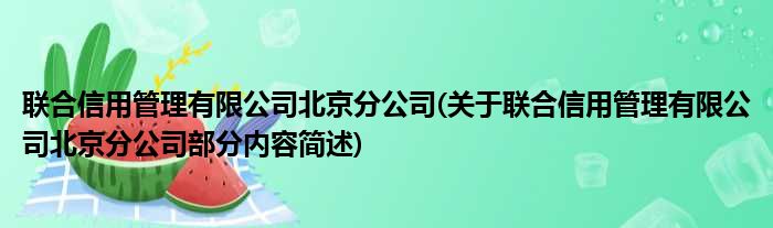 联合信用管理有限公司北京分公司(关于联合信用管理有限公司北京分公司部分内容简述)