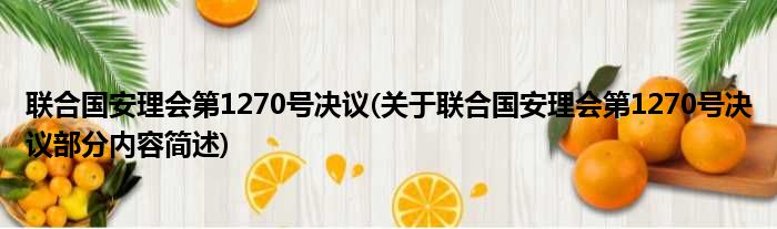 1、 《联合国安理会第1270号决议》是1999年10月22日安全理事会第4054次会议通过的一项决议。