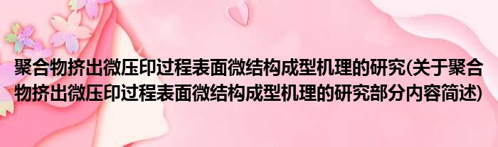 聚合物挤出微压印过程表面微结构成型机理的研究(关于聚合物挤出微压印过程表面微结构成型机理的研究部分内容简述)