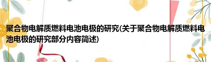 导读 大家好,今天小方来说说一篇关于聚合物电解质燃料电池电极的研究,关于聚合物电解质燃料电池电极的研究部分内容简述的文章,那么现在就为大