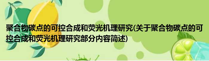 导读 大家好,今天小方来说说一篇关于聚合物碳点的可控合成和荧光机理研究,关于聚合物碳点的可控合成和荧光机理研究部分内容简述的文章,那么现