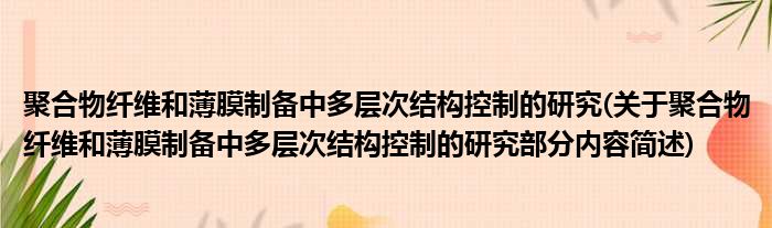 聚合物纤维和薄膜制备中多层次结构控制的研究(关于聚合物纤维和薄膜制备中多层次结构控制的研究部分内容简述)