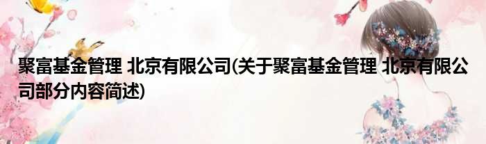 聚富基金管理 北京有限公司(关于聚富基金管理 北京有限公司部分内容简述)