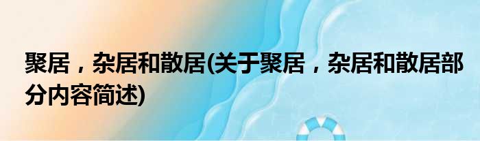 聚居,杂居和散居(关于聚居,杂居和散居部分内容简述)