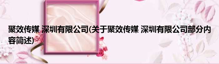 聚效传媒 深圳有限公司(关于聚效传媒 深圳有限公司部分内容简述)