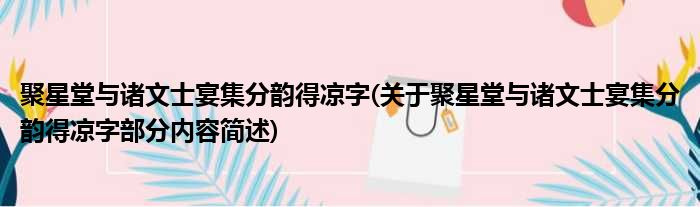 聚星堂与诸文士宴集分韵得凉字(关于聚星堂与诸文士宴集分韵得凉字部分内容简述)