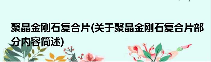 聚晶金刚石复合片(关于聚晶金刚石复合片部分内容简述)
