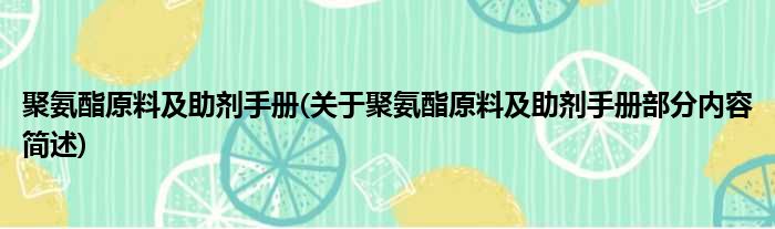 聚氨酯原料及助剂手册(关于聚氨酯原料及助剂手册部分内容简述)