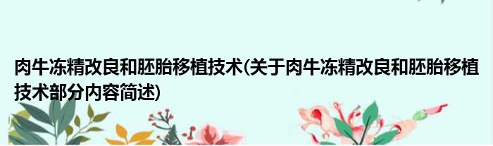 肉牛冻精改良和胚胎移植技术(关于肉牛冻精改良和胚胎移植技术部分内容简述)