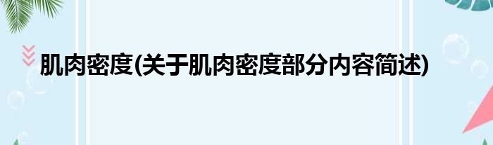肌肉密度(关于肌肉密度部分内容简述)