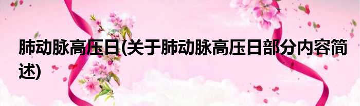 肺动脉高压日(关于肺动脉高压日部分内容简述)