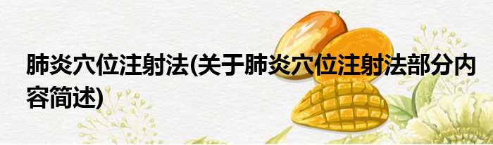 肺炎穴位注射法(关于肺炎穴位注射法部分内容简述)