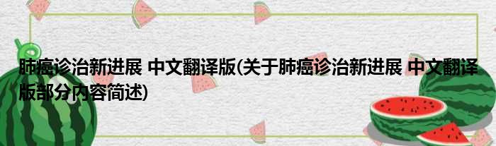 肺癌诊治新进展 中文翻译版(关于肺癌诊治新进展 中文翻译版部分内容简述)