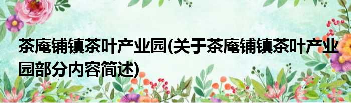 茶庵铺镇茶叶产业园(关于茶庵铺镇茶叶产业园部分内容简述)