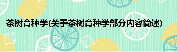 导读 大家好,今天小方来说说一篇关于茶树育种学,关于茶树育种学部分内容简述的文章,那么现在就为大家来简单介绍下,希望对各位小伙伴们有所帮