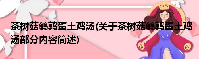 茶树菇鹌鹑蛋土鸡汤(关于茶树菇鹌鹑蛋土鸡汤部分内容简述)