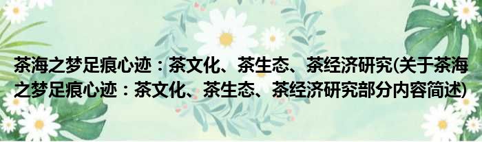 茶海之梦足痕心迹:茶文化、茶生态、茶经济研究(关于茶海之梦足痕心迹:茶文化、茶生态、茶经济研究部分内容简述)
