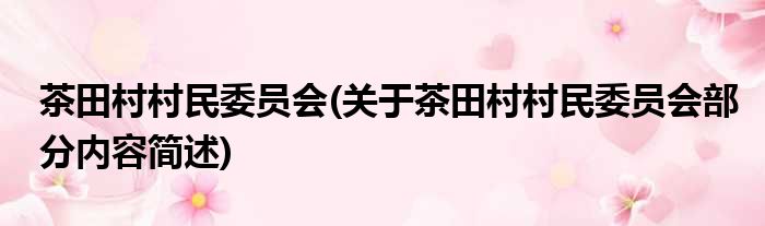 茶田村村民委员会(关于茶田村村民委员会部分内容简述)
