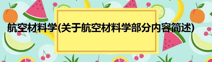 大家好,今天小方来说说一篇关于航空材料学,关于航空材料学部分内容简述的文章,那么现在就为大家来简单介绍下,希望对各位小伙伴们有所帮助。