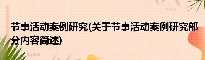 节事活动案例研究(关于节事活动案例研究部分内容简述)