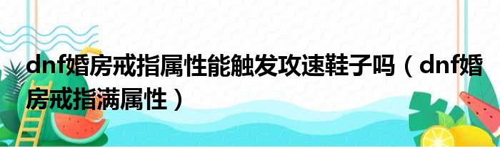 dnf婚房戒指属性能触发攻速鞋子吗(dnf婚房戒指满属性)
