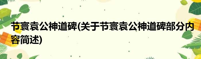 节寰袁公神道碑(关于节寰袁公神道碑部分内容简述)